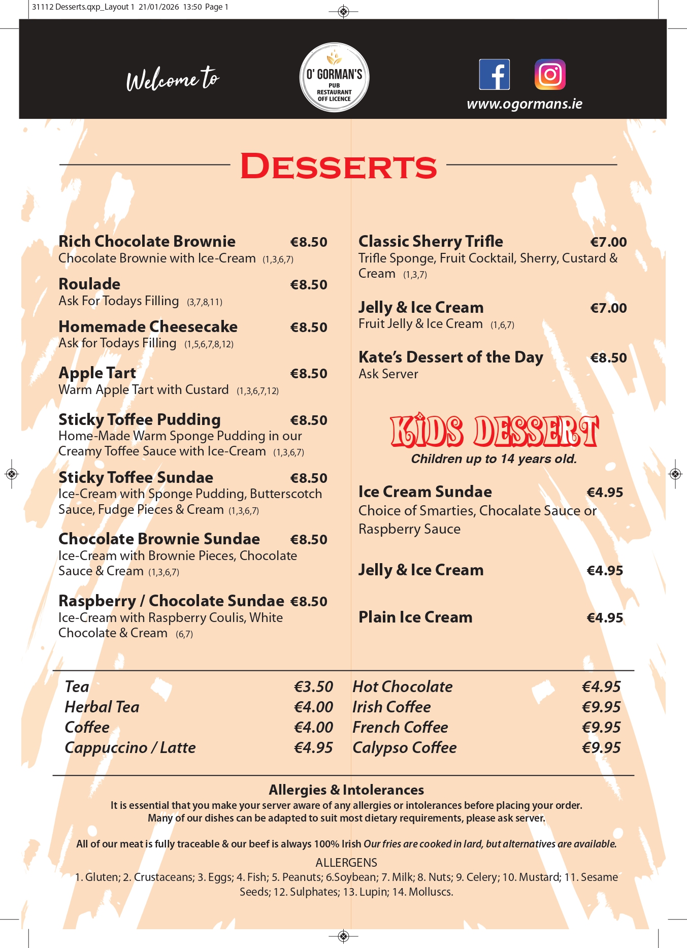 100% Irish Beef on ALL our Menus